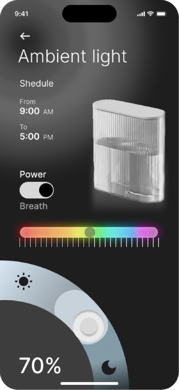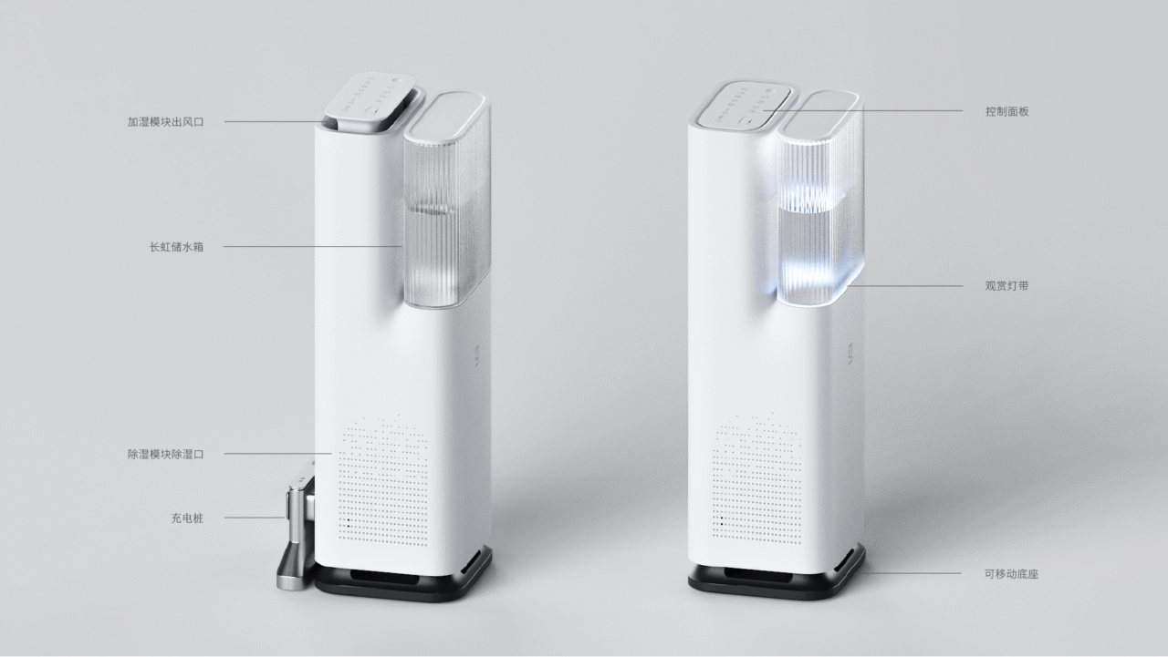 收集从除湿的的水分,机身上有led灯带,可透过通过流动光效模拟“呼吸节奏”。