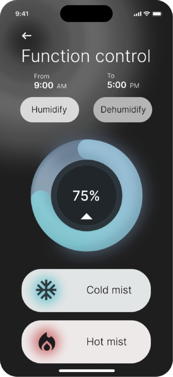 智能检测在不同的湿度需求下自动切换,确保室内空气保持在一个舒适的湿度范围内,避免空气过干或过湿。