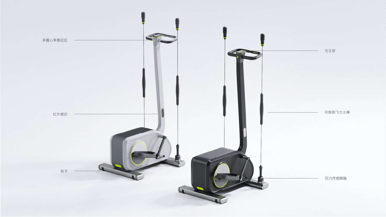 为步态不稳、康复期用户及小体型人群(如青少年、女性、老年人)打造一款安全易用的智能居家椭圆机。通过压力传感、红外线感应来实时监测用户使用姿势,通过交互提示用户及时纠正姿势。